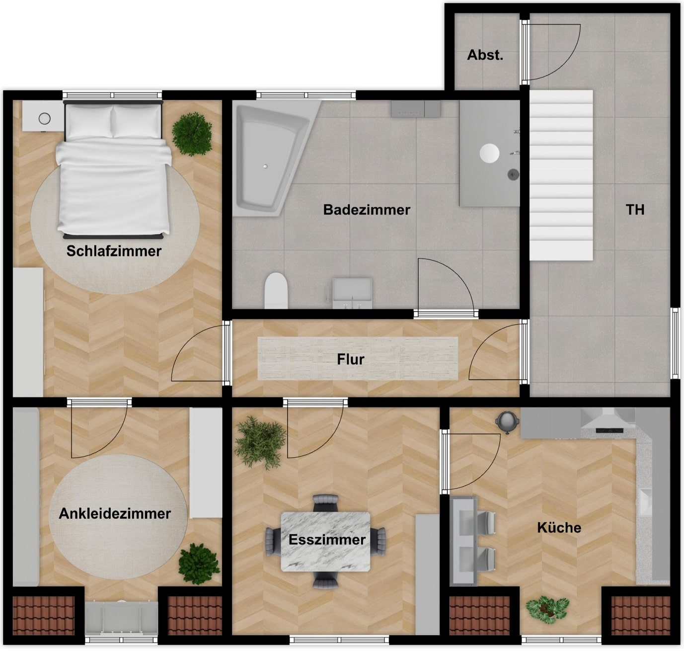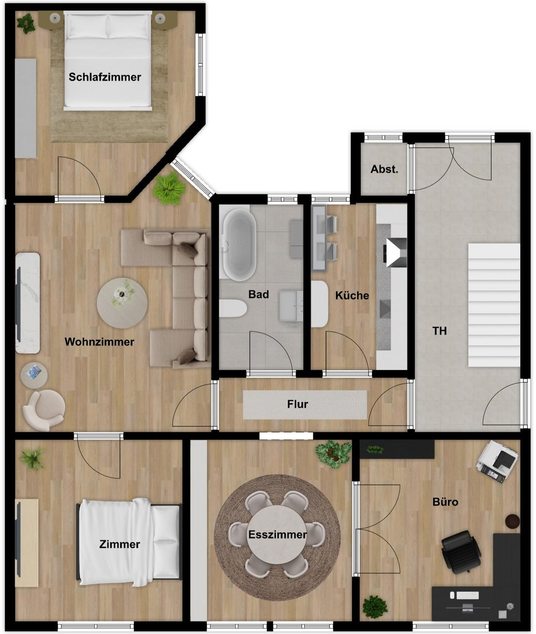 Die Erdgeschosswohnung mit einer Wohnfläche von ca. 95 m² ist aktuell frei und zeitnah bezugsfähig, während die beiden weiteren Wohneinheiten vermietet sind. Zusätzlich sind vier Garagen vermietet, was eine stabile Mietertragsseite sicherstellt. Die derzeitige Jahresnettomieteinnahme beträgt etwa 7.200 € und weist für die Zukunft ein deutliches Steigerungspotenzial auf.