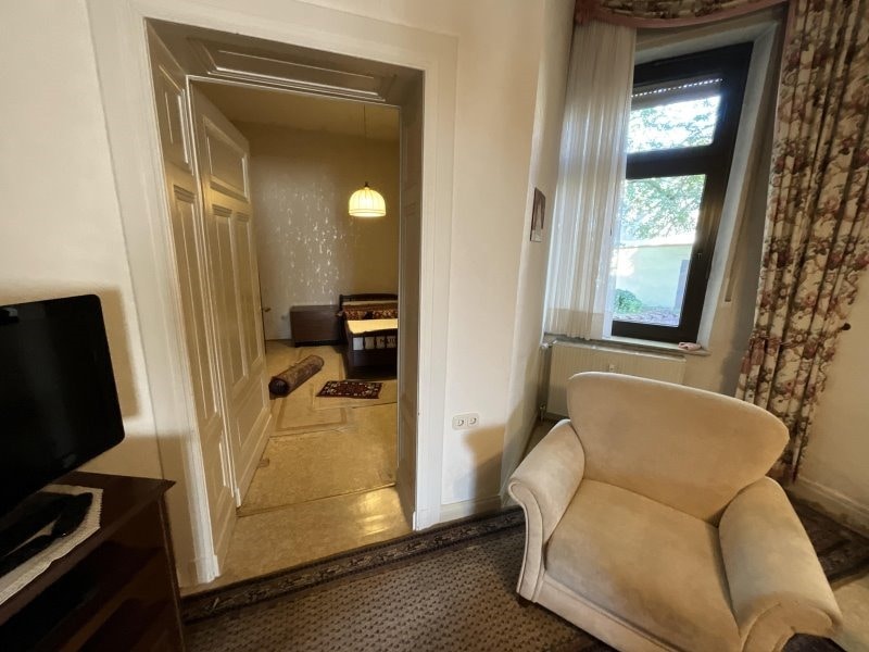 Die Architektur trägt typische Details der historischen Bauweise und verbindet diese charmant mit praktischem Wohnkomfort. Das großzügige Grundstück bietet neben ausreichendem Grün- und Terrassebereich auch Potenzial für Modernisierungen oder eine attraktive Gestaltung der Außenanlagen.