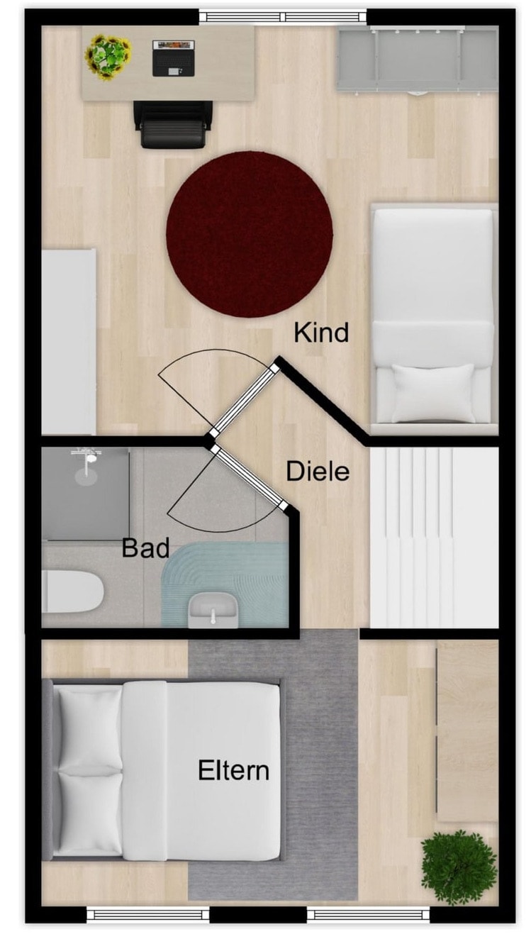 Es handelt sich hier um ein solides Reihenmittelhaus aus dem Baujahr 1989. Das Haus ist gepflegt und wurde immer instand gehalten. Der Grundriss mit Wohnzimmer, Schlafzimmer und 2 weiteren Räumen ist angenehm. Das große Kinderzimmer im 1. OG kann auch noch geteilt werden. Im Badezimmer wurde 2020 die Wanne durch eine begehbare Dusche ersetzt. Die Fenster auf der Straßenseite wurden 2009 durch moderne Kunststofffenster ersetzt. Bis auf eine werden alle Rollläden elektrisch betrieben. Zum Haus gehört eine Garage, die direkt mit dem Garten verbunden ist. Das Haus wird kurzfristig frei.