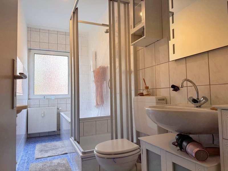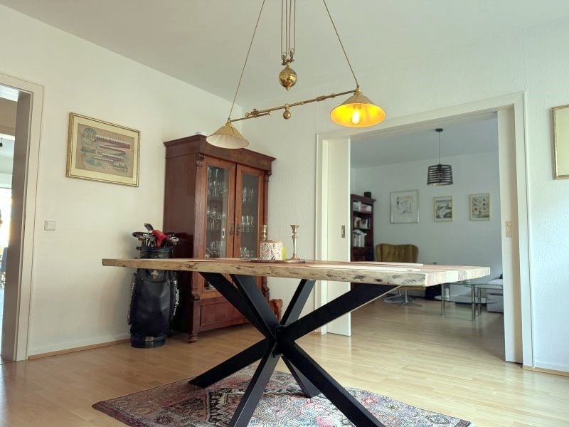 Diese ca. 82 m² große Wohnung in der 1. Etage eines ruhigen 4-Parteien-Hauses überzeugt durch eine großzügige und flexible Aufteilung. Von der zentralen Diele aus erreichen Sie alle Räume, darunter das helle Esszimmer, das über eine Schiebetür direkt mit dem Wohnzimmer verbunden ist. Besonders praktisch: Das Wohnzimmer verfügt zusätzlich über einen eigenen Flurzugang, was Ihnen bei der Einrichtung alle Freiheiten lässt.
