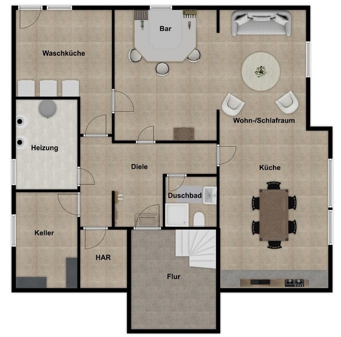 So ergeben sich vielfältige Nutzungsmöglichkeiten: Wohnen und Arbeiten unter einem Dach oder wohnen und Mieteinnahmen oder ein neues Heim für die große Familie im Mehrgenerationenhaus oder einfach nur sehr großzügig wohnen, hier ist alles möglich.