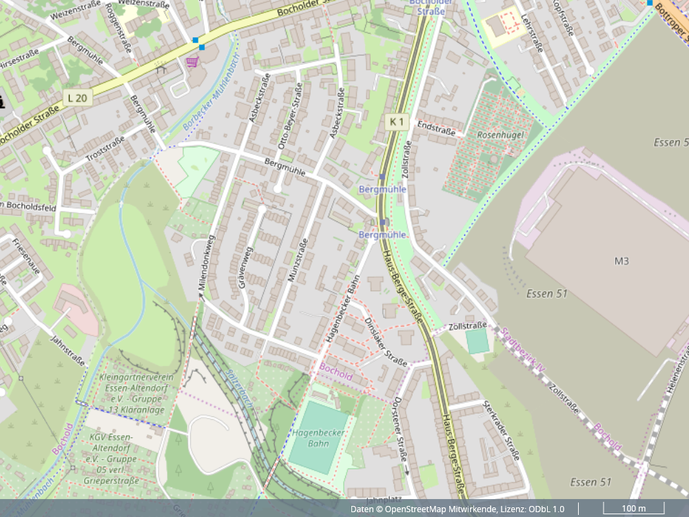 Der Stadtteil Essen-Bochold bietet eine gute ÖPNV-Anbindung zu Essener Zentren sowie eine Anbindung an Autobahnen und Bundesstraßen, die ins Ruhrgebiet führen. Infrastrukturell gibt es eine Nahversorgung mit Supermärkten, Apotheken, Banken und Bäckern, außerdem sind Schulen, Kindergärten und Ärzte in erreichbarer Distanz vorhanden. Das Umfeld zeichnet sich durch gemischte Bebauung aus, ruhige Wohnstraßen und nahe Grünflächen sowie Erholungsgebiete aus. Die Stadtqualität ist durch die zentrale Lage mit guter Erreichbarkeit von Arbeitsplätzen, Kultur- und Gastronomieangeboten geprägt, was eine solide Basis für langfristiges Wohnen bietet.