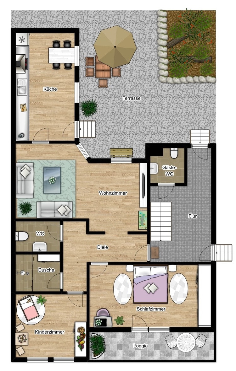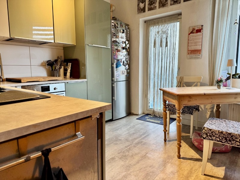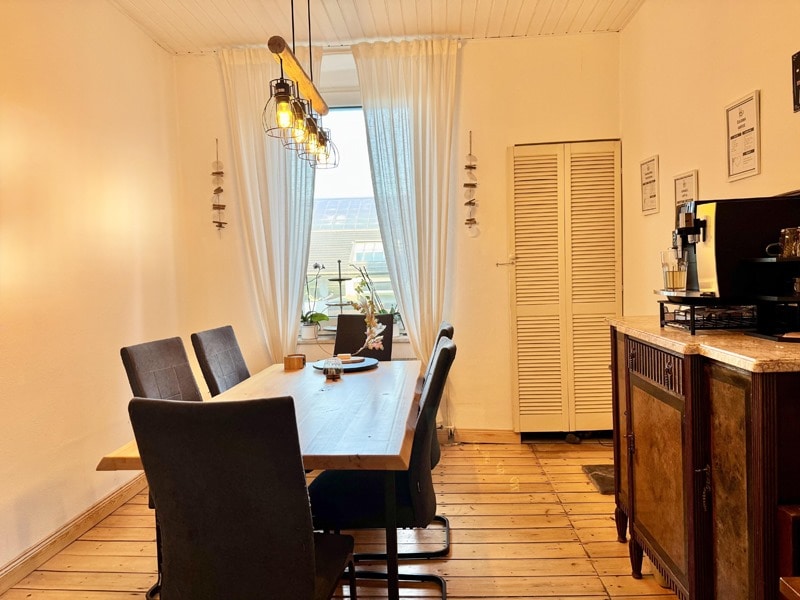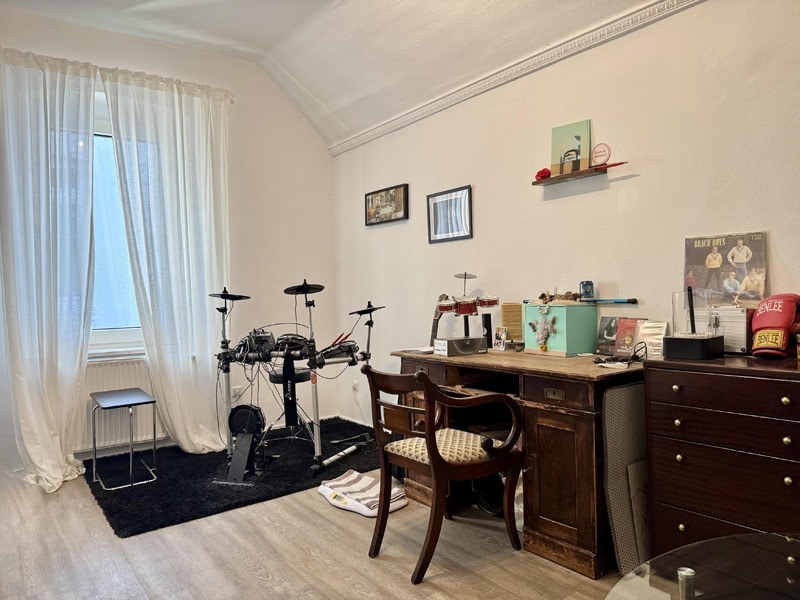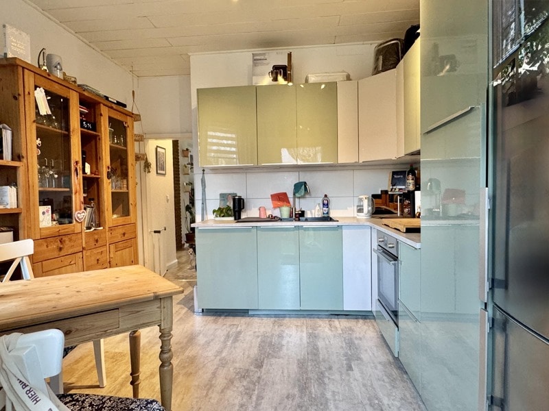 Dieses gepflegte 2-3-Familienhaus liegt in einer ruhigen Seitenstraße und wurde 1907 auf einem 457 m² großen Grundstück errichtet. Die Eigentümerwohnung im Erdgeschoss des Hauses verfügt über eine Wohnfläche von ca. 92 m² verteilt auf 3 ½ Zimmer. Hier erwartet Sie ein Wohnzimmer, ein Schlafzimmer mit Zugang zur Loggia, ein Kinderzimmer, eine Küche, ein Wannenbad sowie ein WC. Den liebevoll angelegten Garten mit Terrasse erreichen Sie von der Küche aus, oder durch das Treppenhaus. Dieser bietet Ihnen neben einem Gartenhäuschen auch viel Platz zum Relaxen. Im Treppenhaus steht Ihnen ein Gäste-WC zur Verfügung. Die zweite Wohnung im Ober- und Dachgeschoss wurde zusammengelegt, so ist ein Rückbau zu zwei separaten Wohnungen problemlos möglich. Highlight ist die große Dachterrasse, die zum Verweilen einlädt. Die Wohnung im Ober- und Dachgeschoss besitzt 156 m² Wohnfläche, verteilt auf 6 1/2 Räume mit einem Bad und einer Küche auf jeder Etage. Somit bietet dieses Haus perfekte Voraussetzungen für Mehrgenerationswohnen, oder Wohnen und Arbeiten unter einem Dach. Die Wärmeversorgung des Hauses erfolgt über Gas-Etagenheizungen. Fernwärme liegt aber bereits in der Straße, so dass eine einfache Umrüstung möglich ist. Die Fenster verfügen über Kunststoffrahmen mit Isolierverglasung, welche im Erdgeschoss mit Rollläden versehen sind. Die Bäder wurden vor rund sechs Jahren neu gestaltet. Selbstverständlich ist das Haupthaus unterkellert und bietet Ihnen viel Abstellfläche.