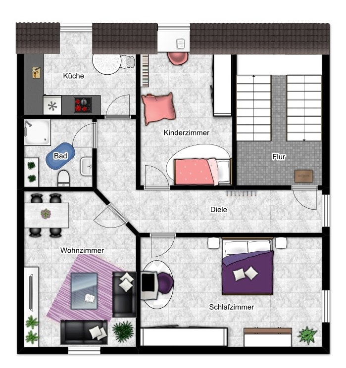Das Dach wurde um 2000 herum erneuert und gedämmt und bietet somit im Spitzboden noch viel Platz für die Eisenbahn oder die Carrerabahn…